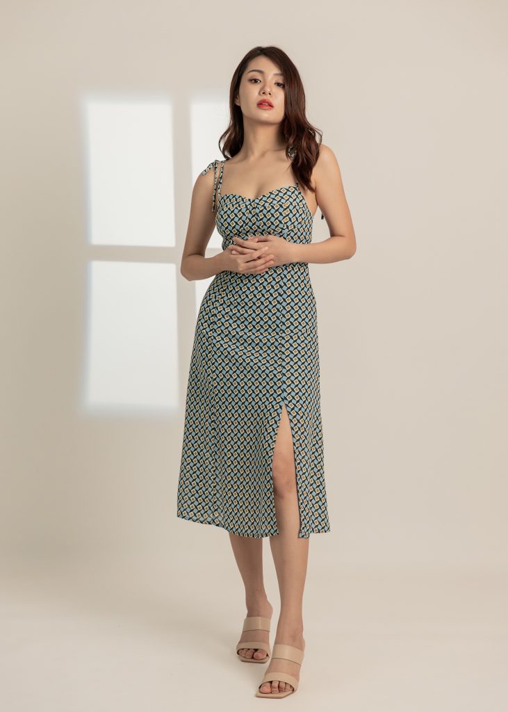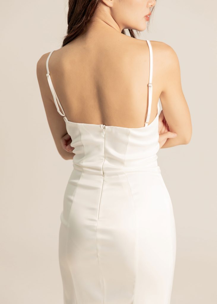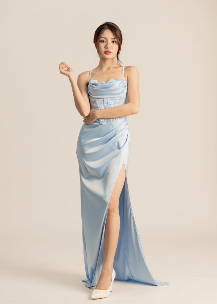 Sculpted Muse Satin Midi Gown In Baby Blue