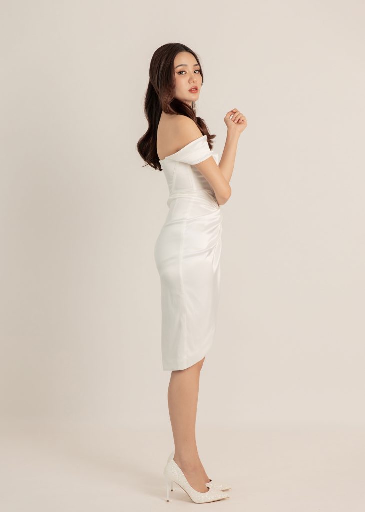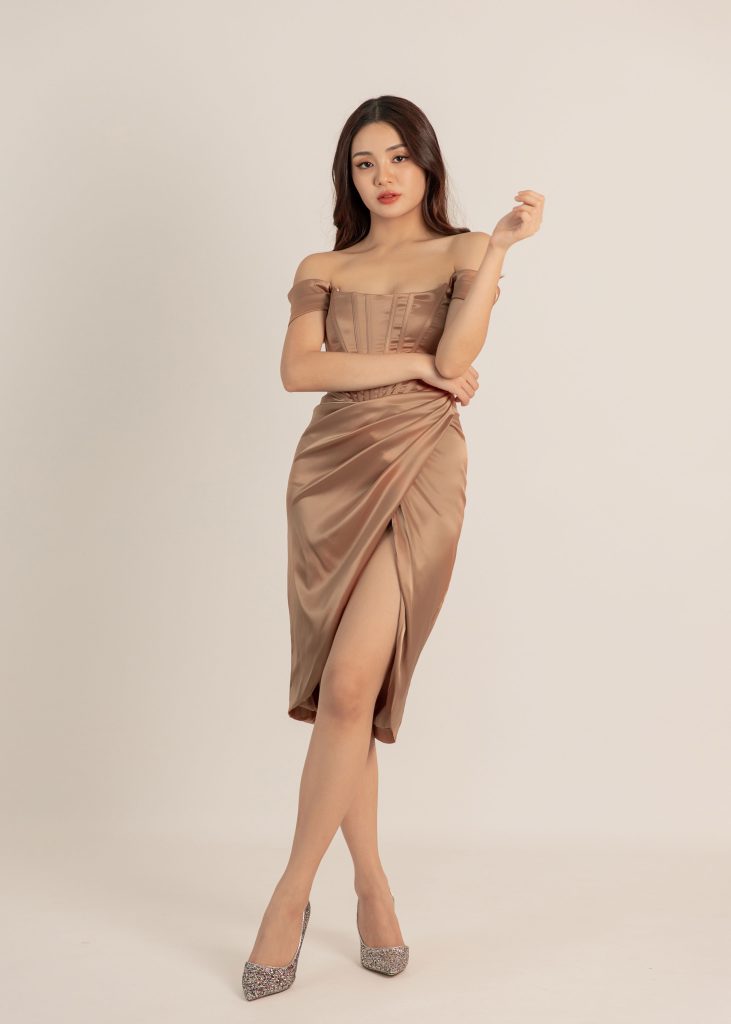 Diana’s Divine Off Shoulder Satin Gown in Brown