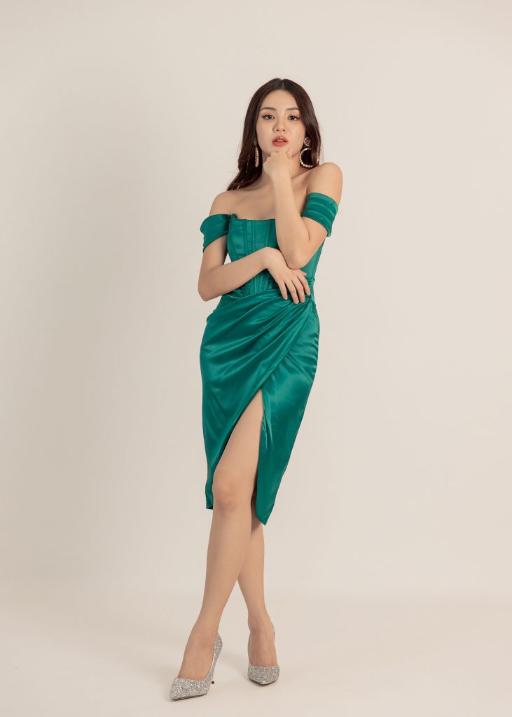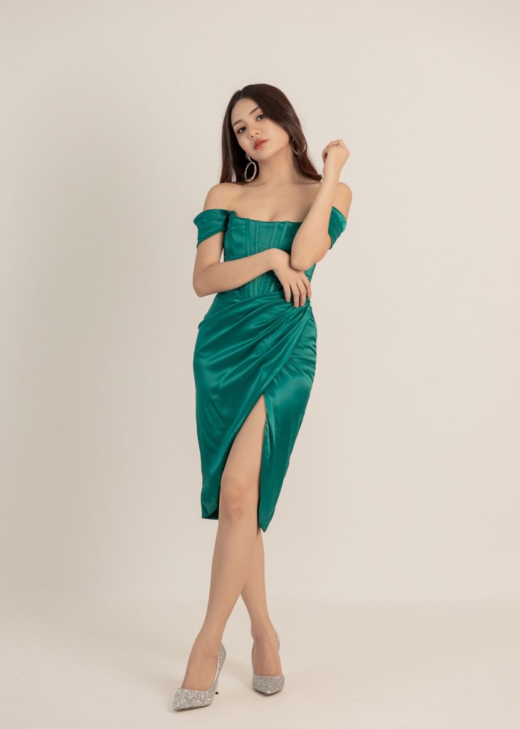 Diana’s Divine Off Shoulder Satin Gown in Turquoise