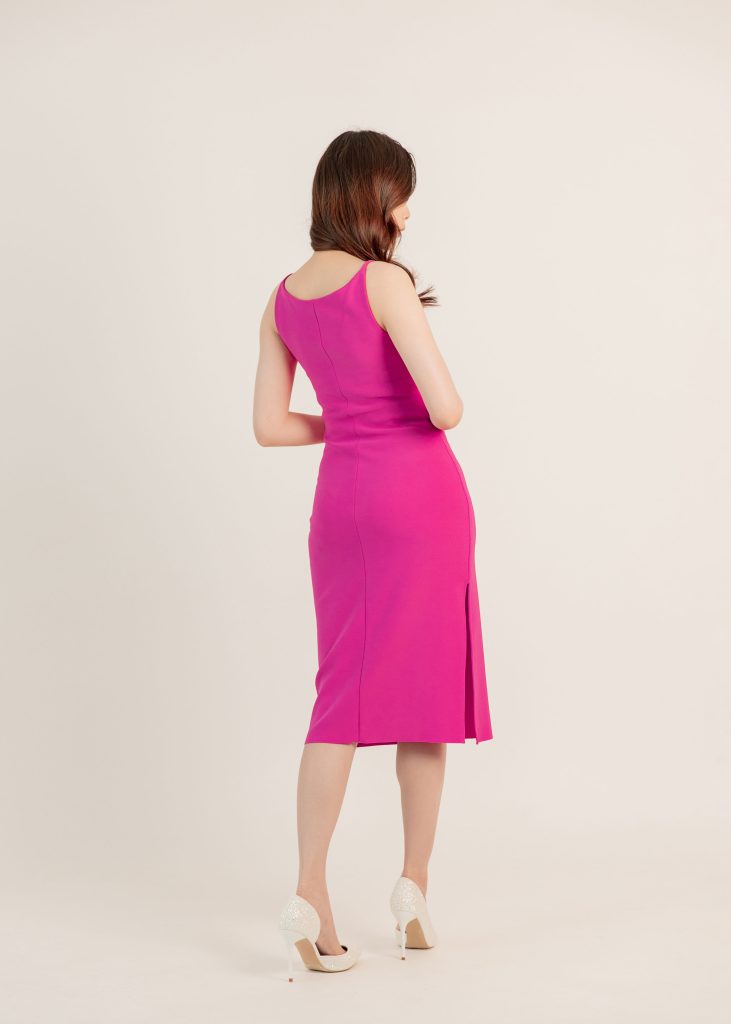 Meredith Modest Midi Dress in Hot Pink
