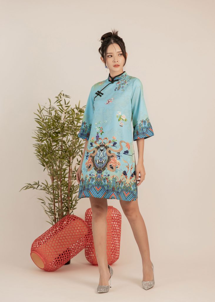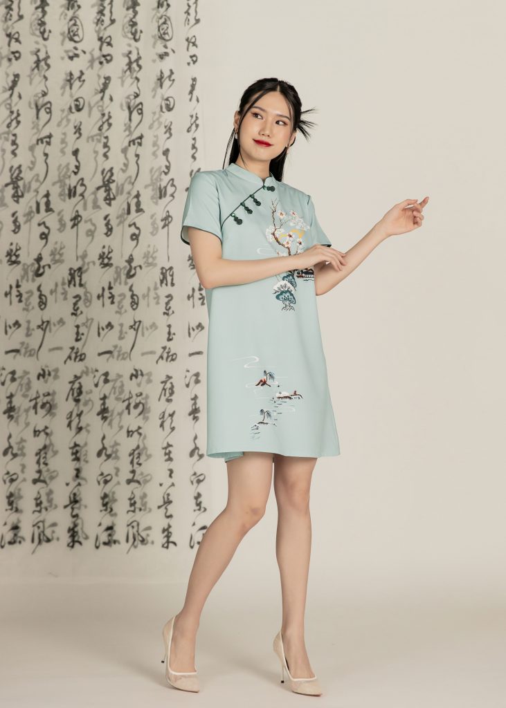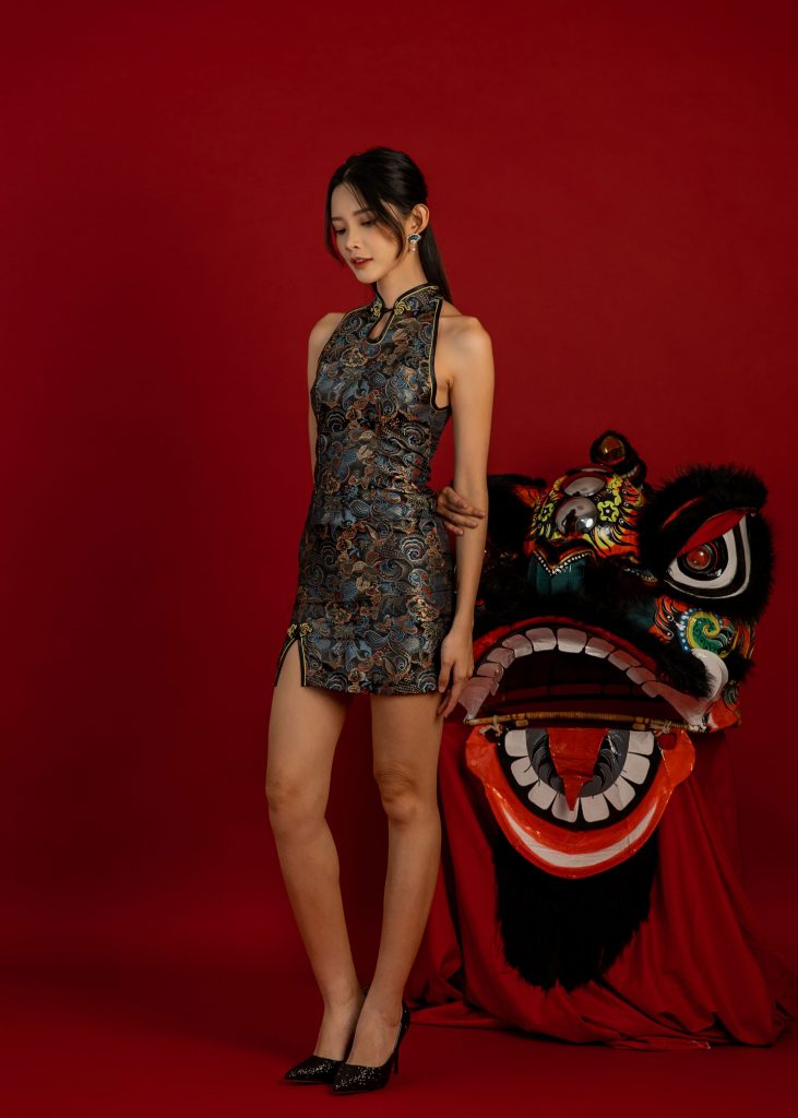 Ancestral Heritage Halterneck Mini Qipao in Black