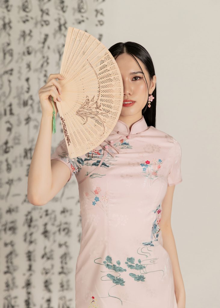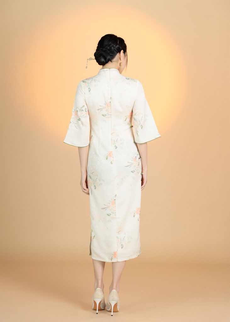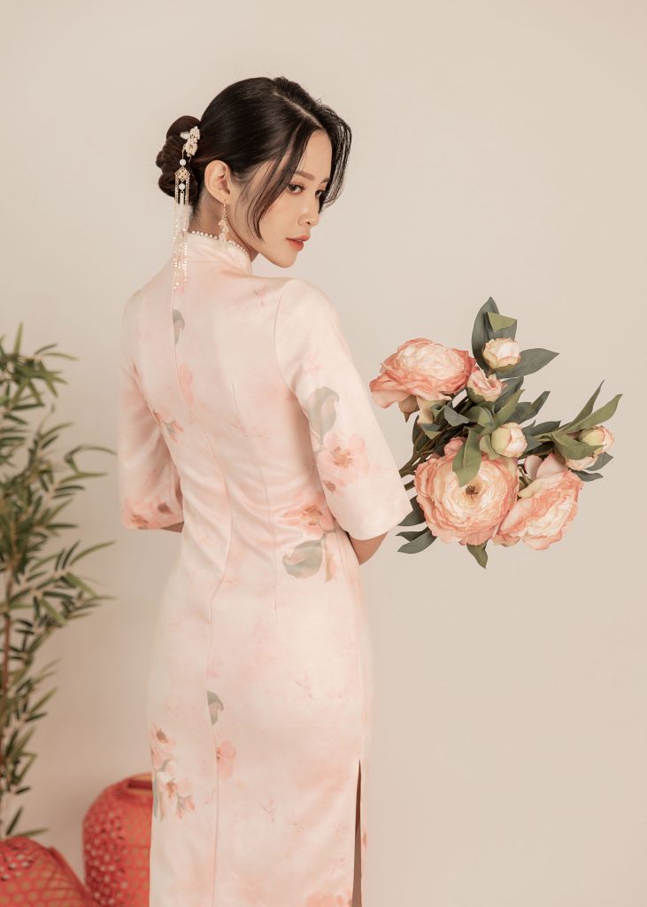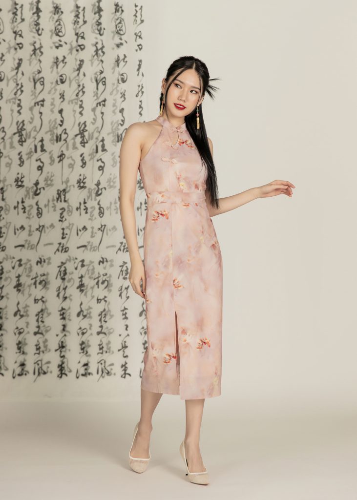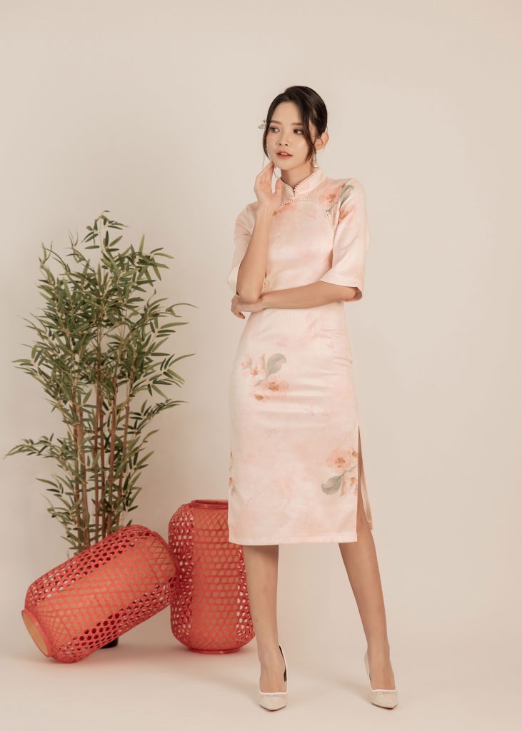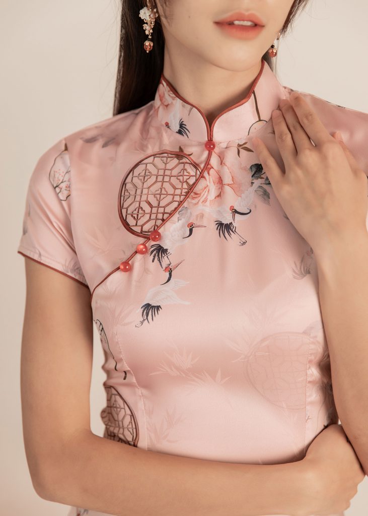 Koi Fortune Midi Qipao + Cardigan in Pink