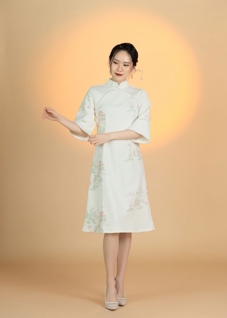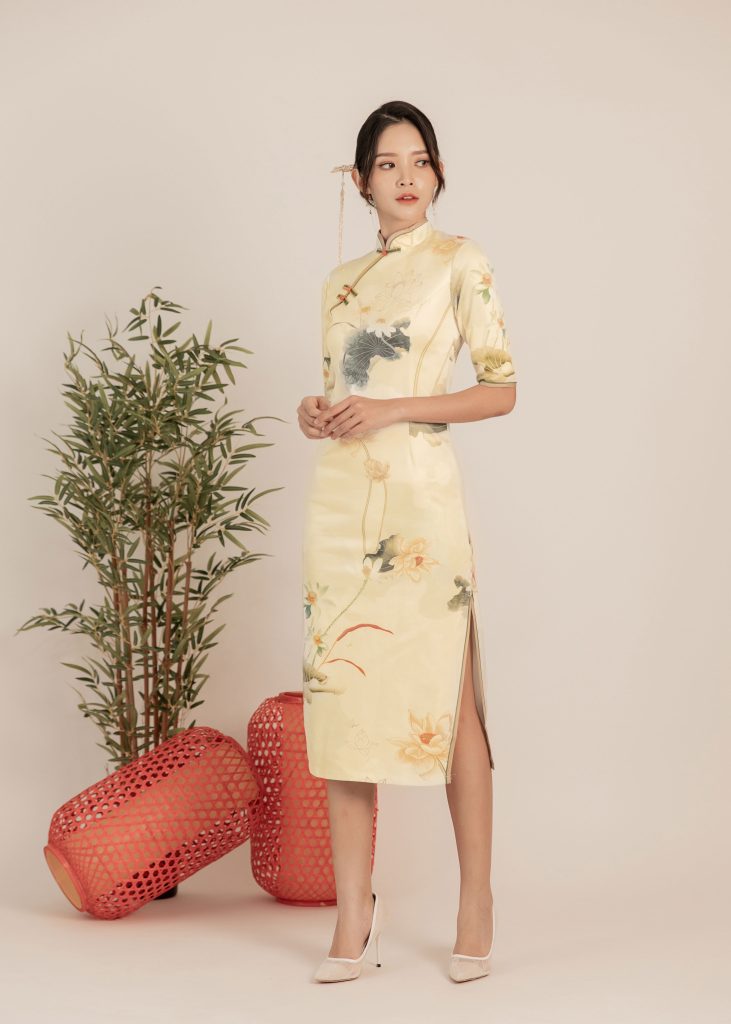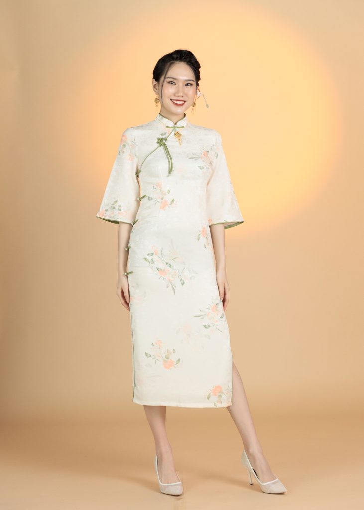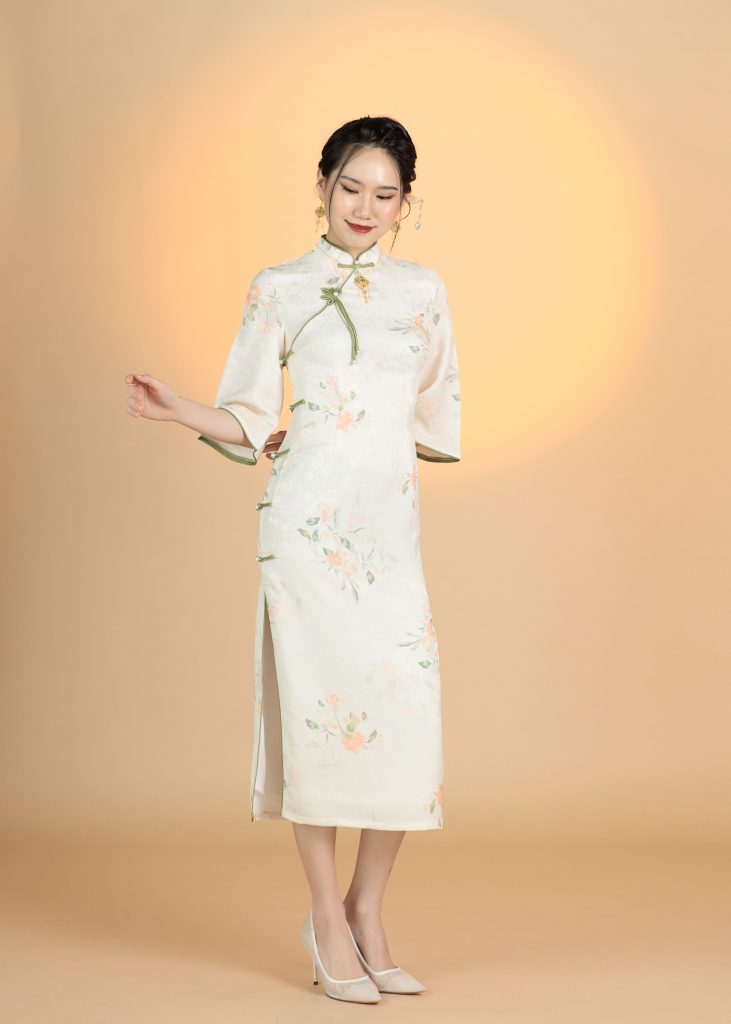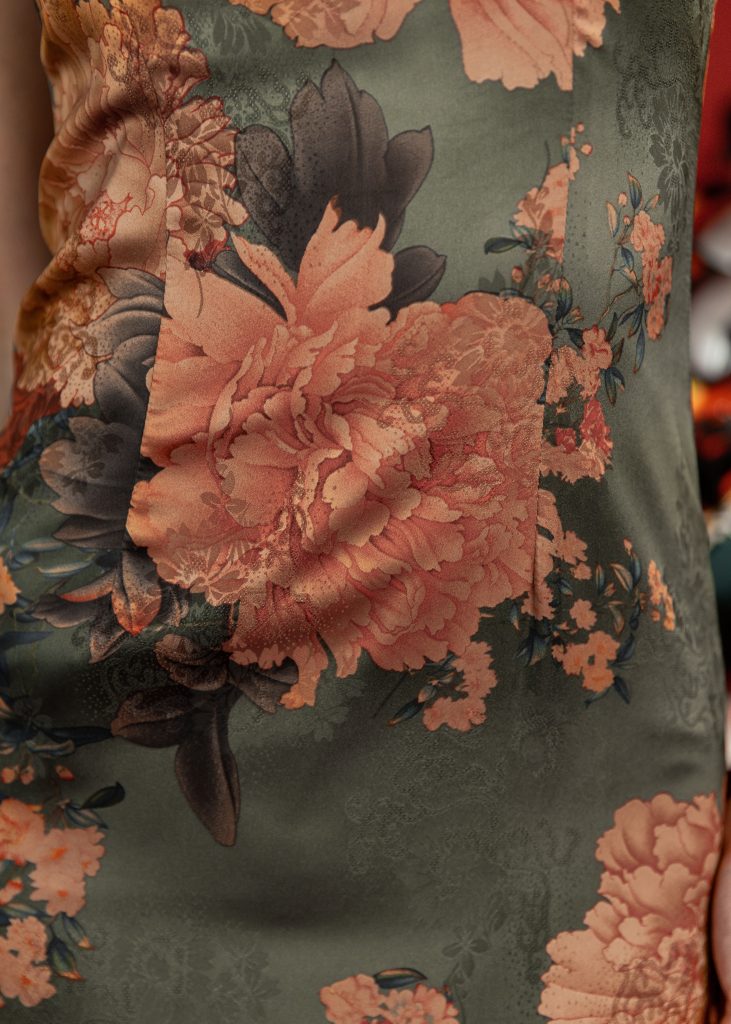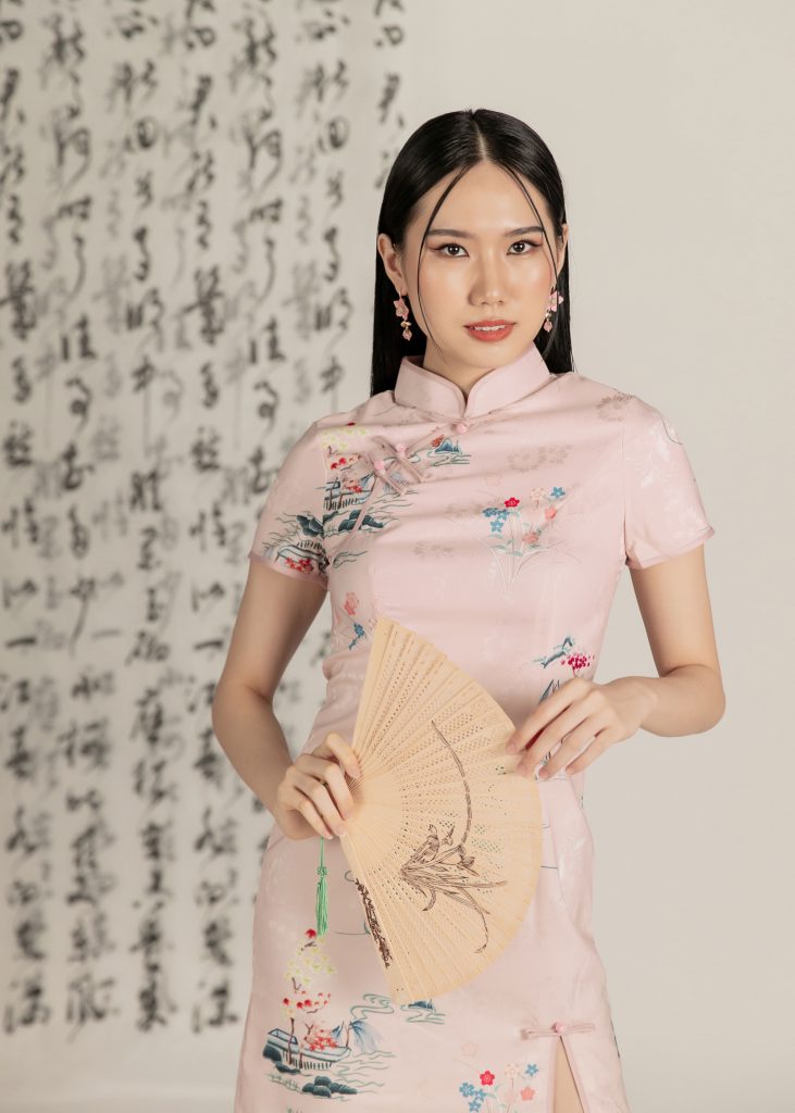 Koi Fortune Midi Qipao + Cardigan in Pink