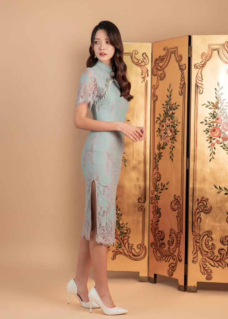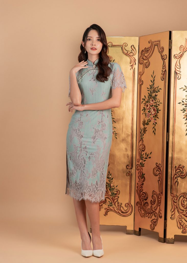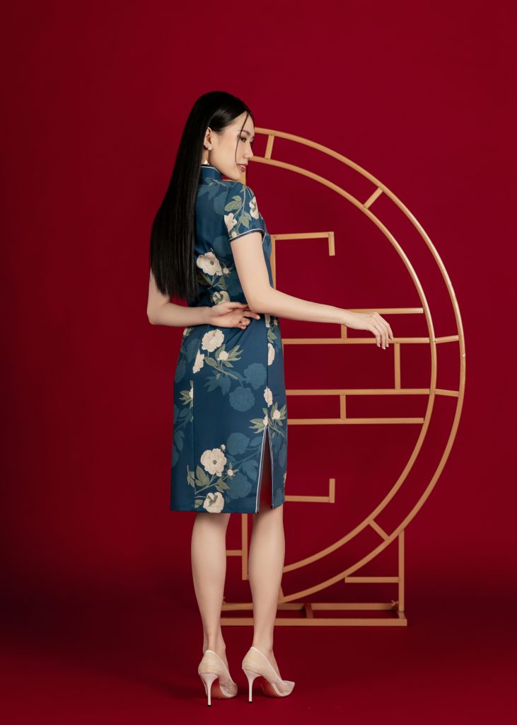 Athena’s Eclipse Midi Qipao in Navy Blue