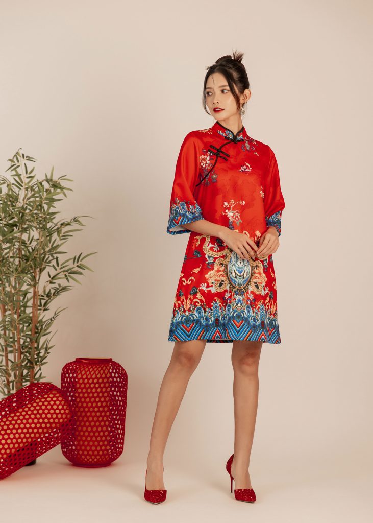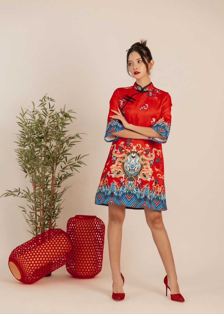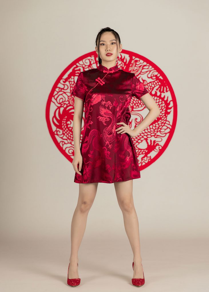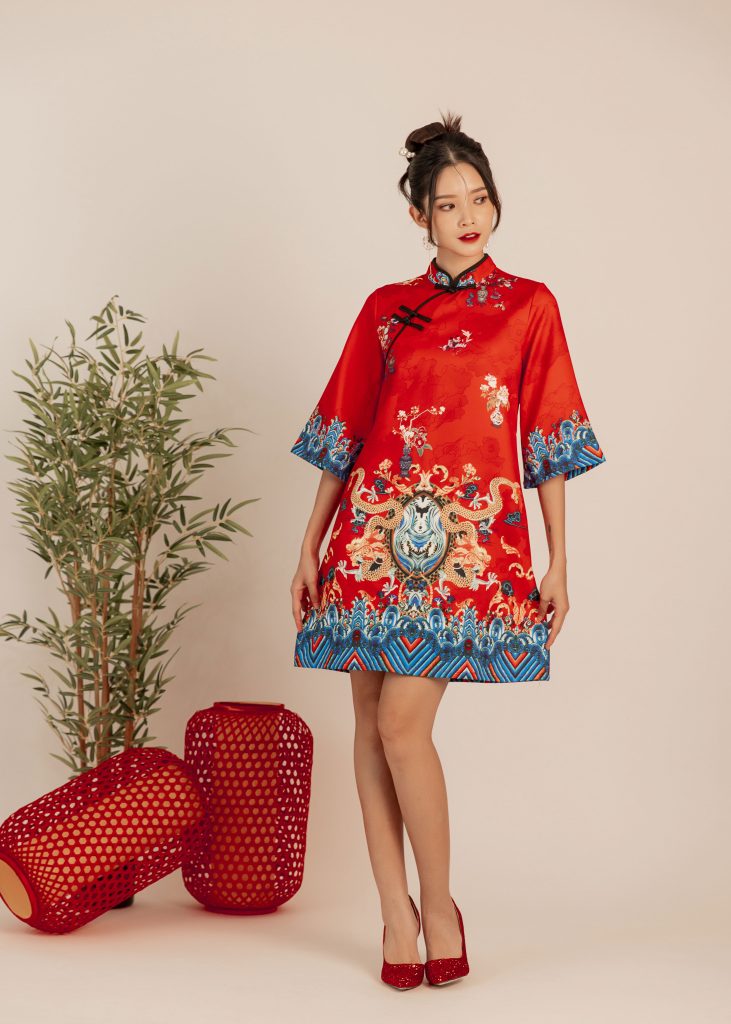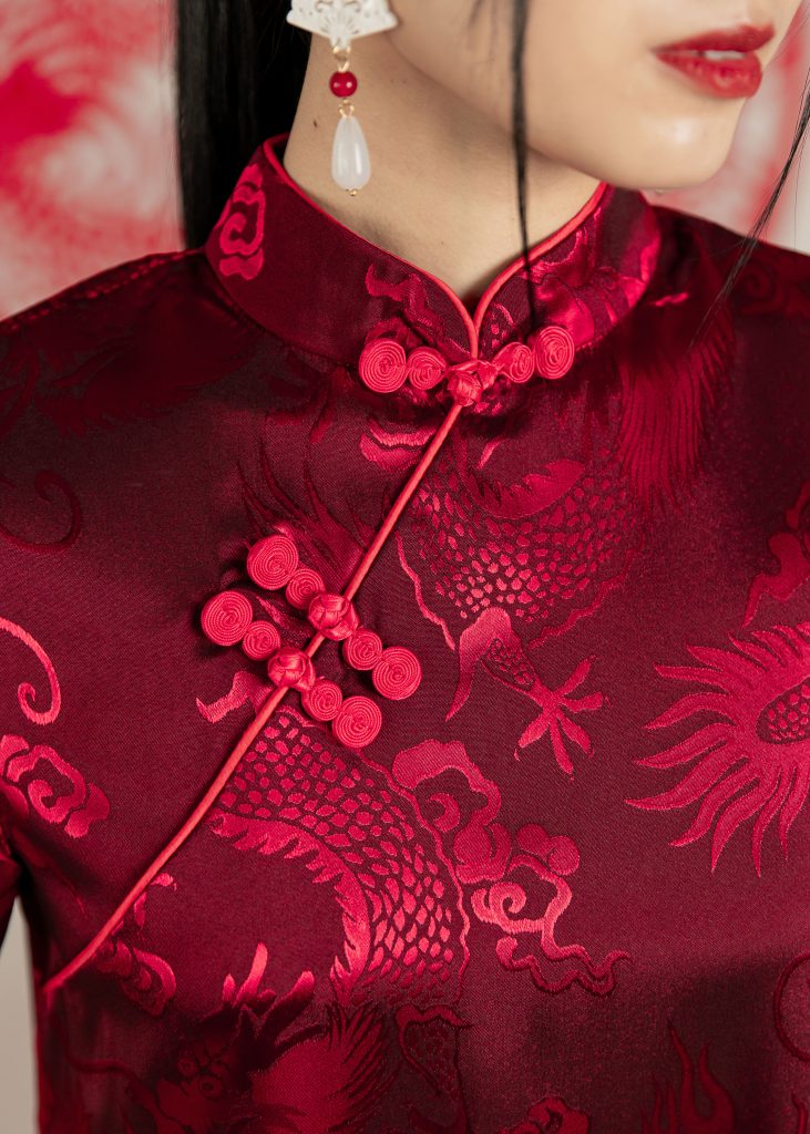 Ancestral Heritage Halterneck Mini Qipao in Red