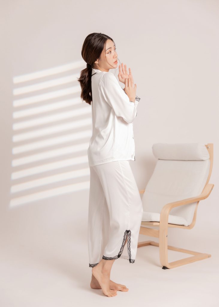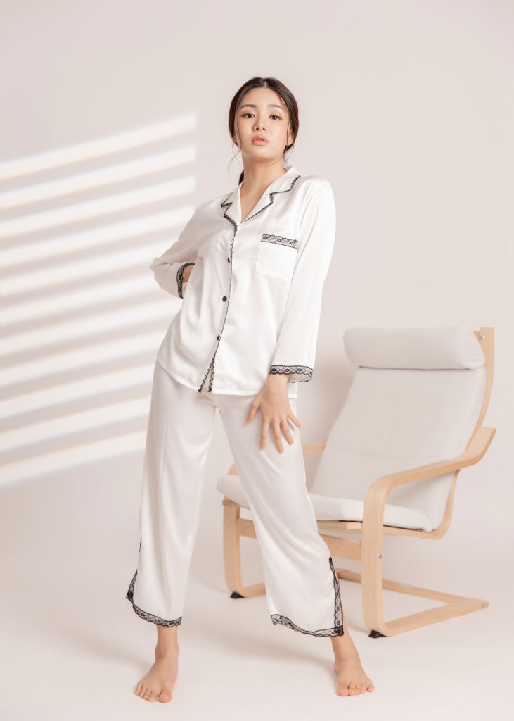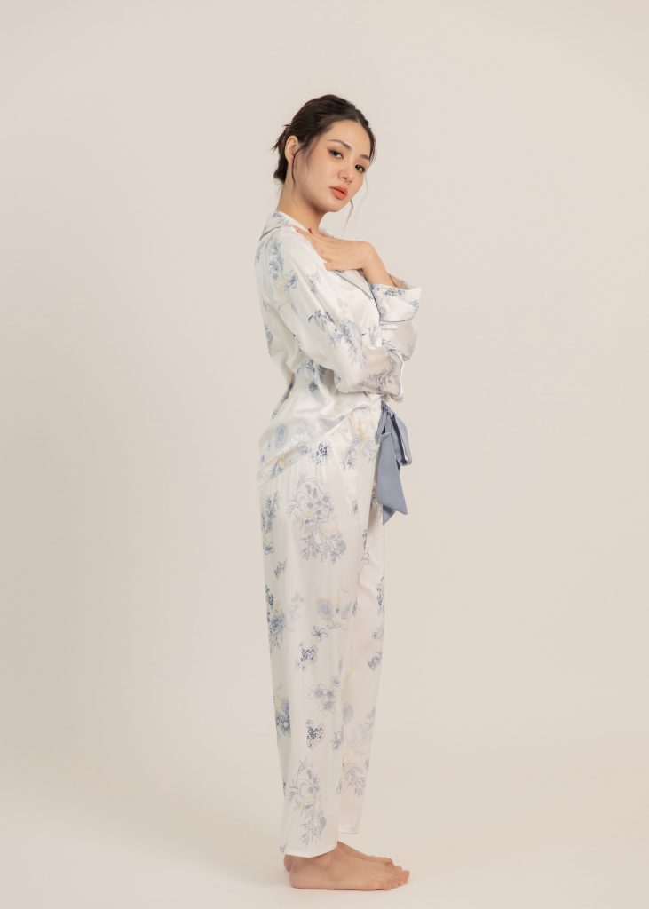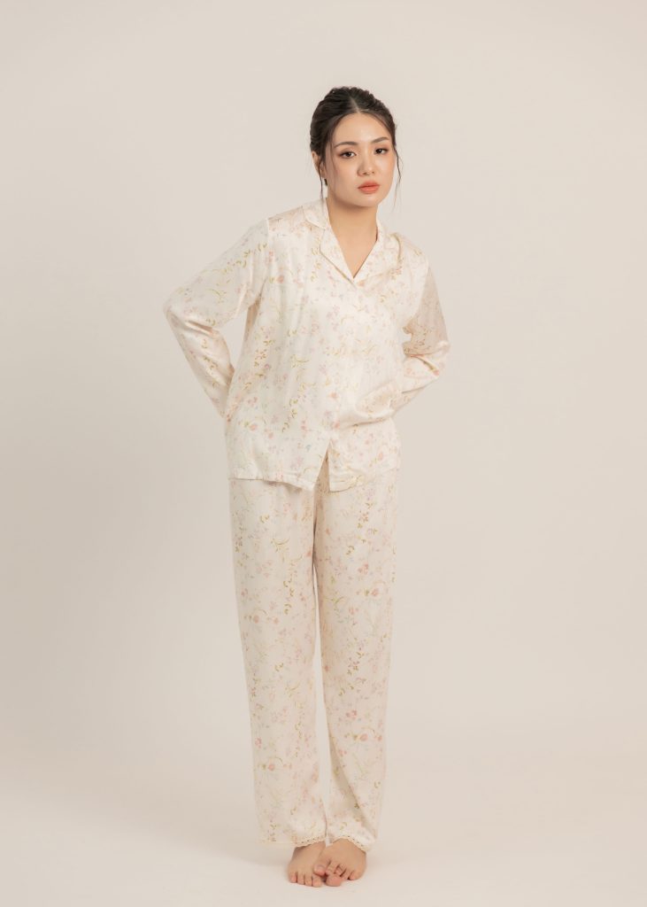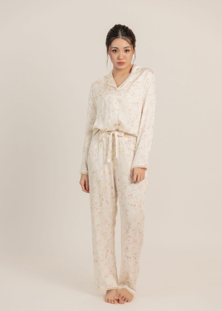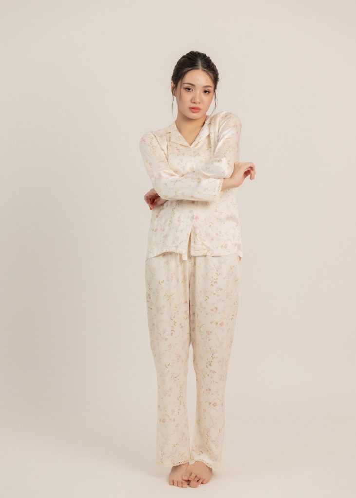 Florentine Hues Nightwear Set (Long Sleeves) in White