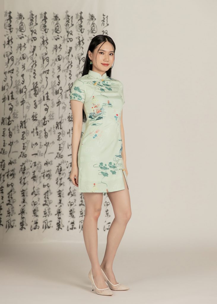Spring Water Lily Mini Qipao in Green Mint