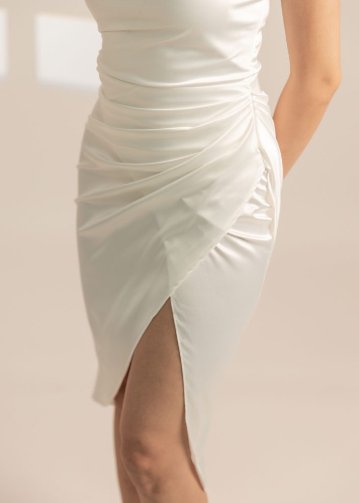 Seraphic Serenade Satin Wrap Mini Skirt In Cream
