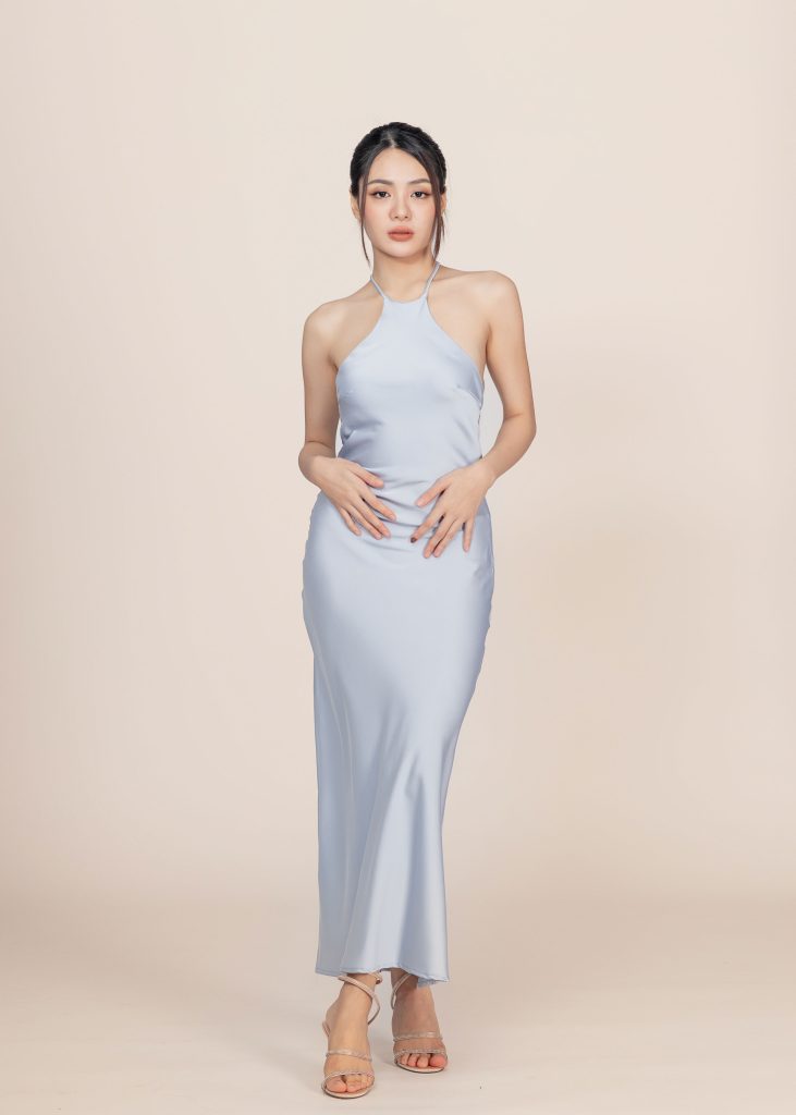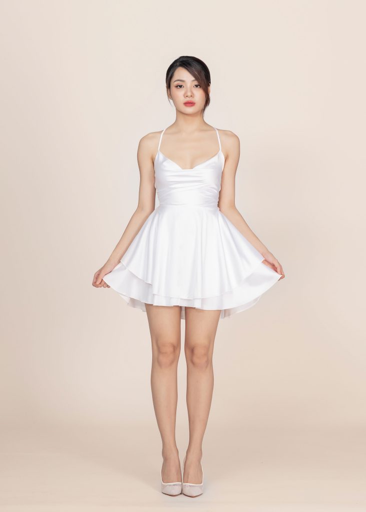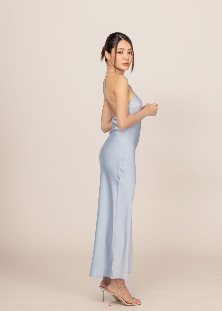 Pixie Flare Satin Mini Dress In Aquamarine Blue