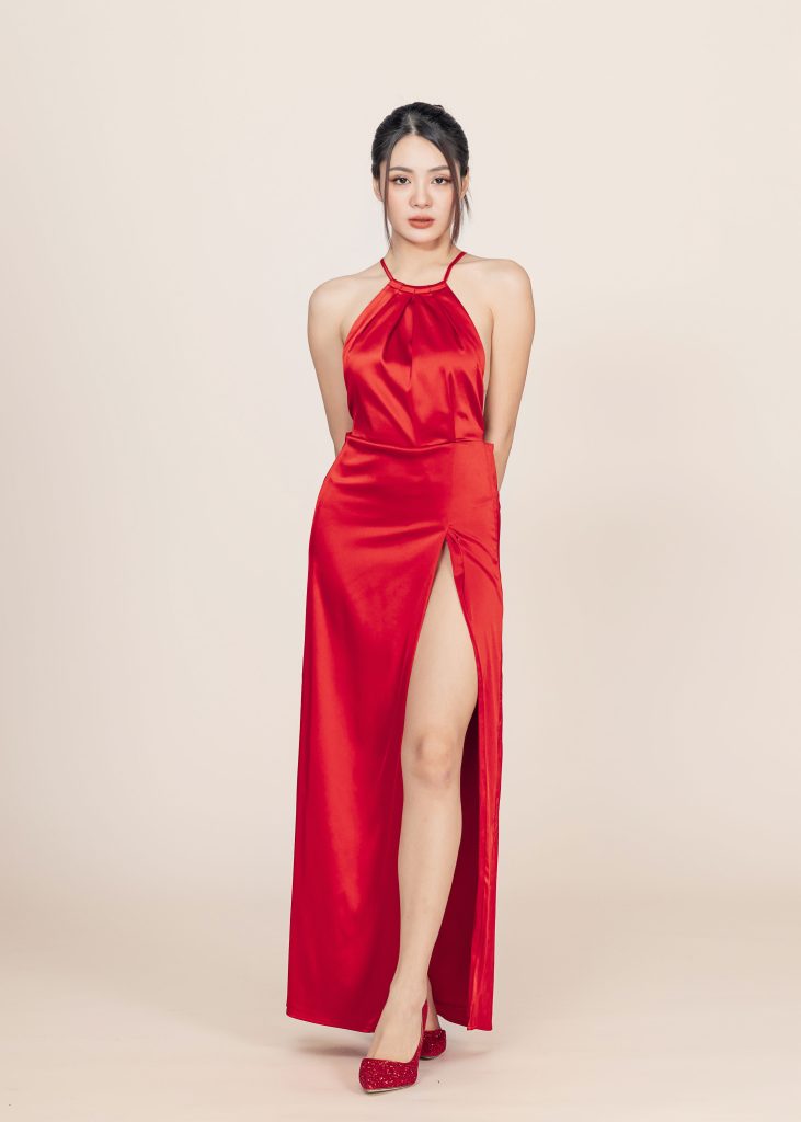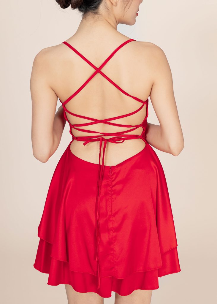 Twirls of Waltz Satin Mini Dress in Crimson Red